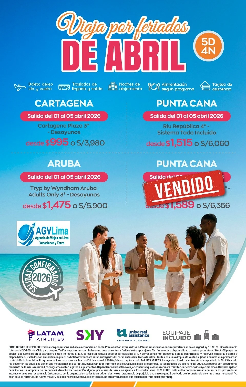 Aquí encontrará una selección completa de las mejores ofertas de viajes al extranjero con salidas desde Lima y otros destinos en Perú para unas vacaciones soñadas. Las mejores ofertas de temporada. Realice su selección y reserva. Nuestros Agentes de Viajes le informarán detalladamente sobre su reserva. Le serán enviados todos los vouchers de viajes y documentación una vez tengamos todo confirmado, con los códigos de reservación para los e-tickets. Esta operación se realizará en el plazo máximo de 72 horas desde la confirmación de la reserva de viaje.