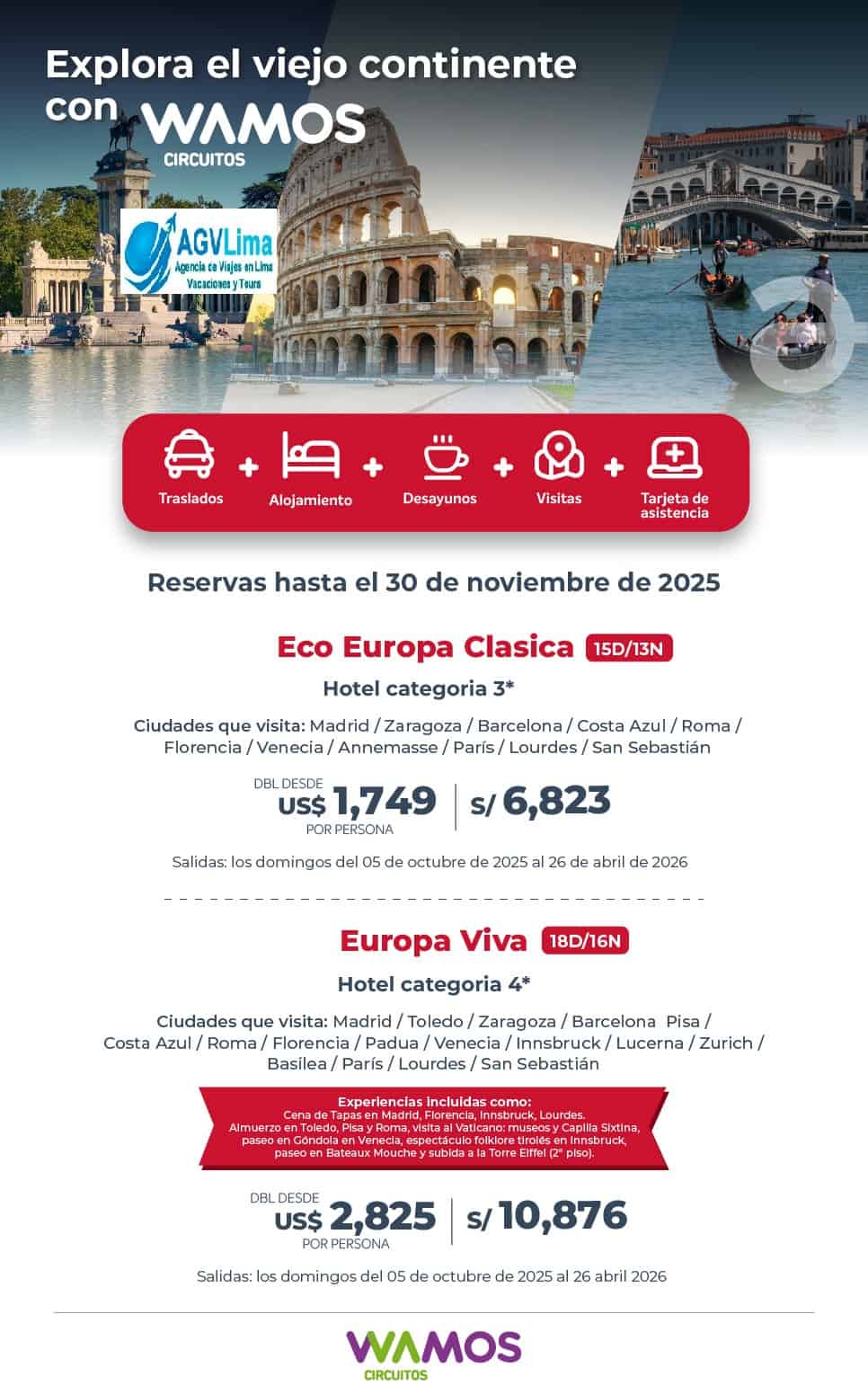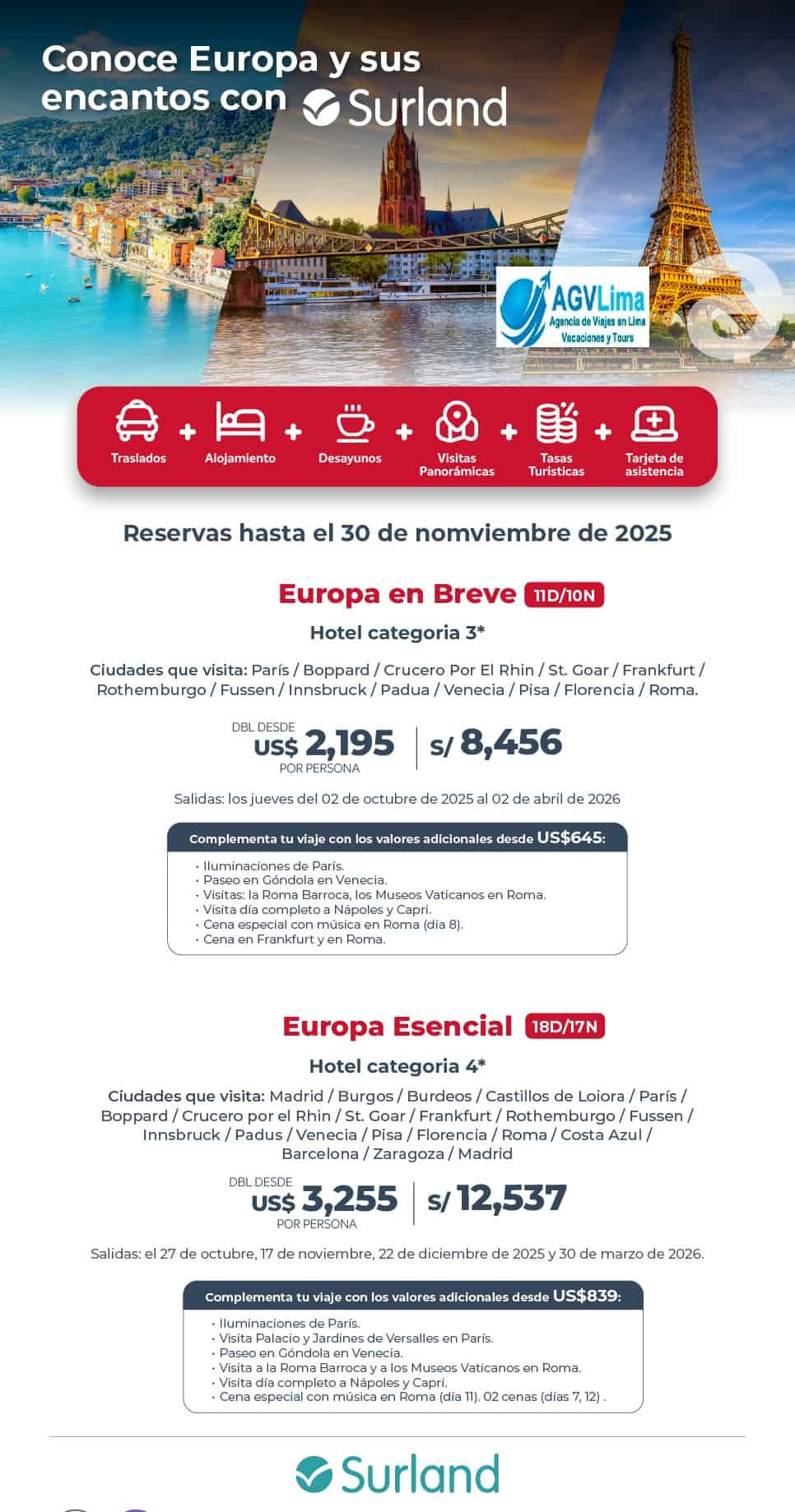 SALIDAS CONFIRMADAS 2025 A EUROPA DESDE LIMA
